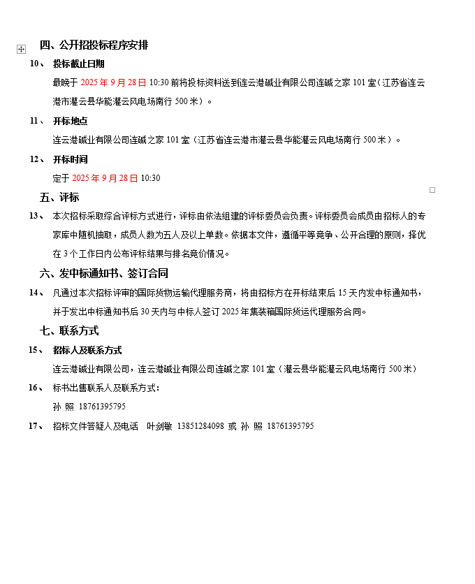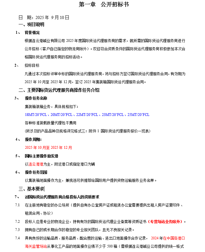 連云港堿業(yè)有限公司集裝箱國際貨運(yùn)代理服務(wù)商項目招標(biāo)公告