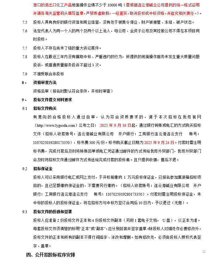 連云港堿業(yè)有限公司散雜貨國際貨運代理服務商項目招標公告