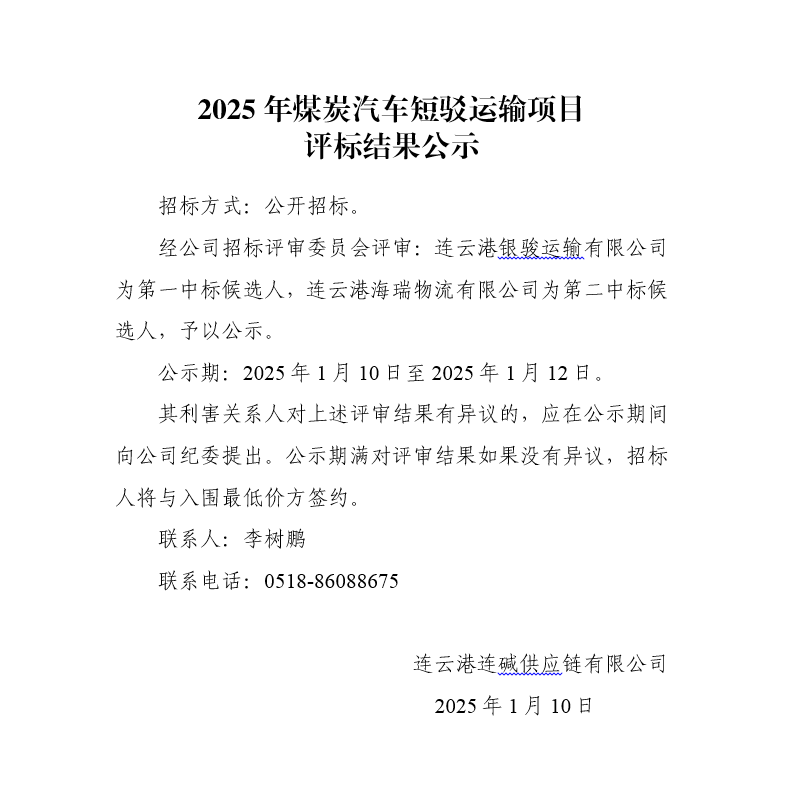2025年煤炭汽車短駁運(yùn)輸項目評標(biāo)結(jié)果公示